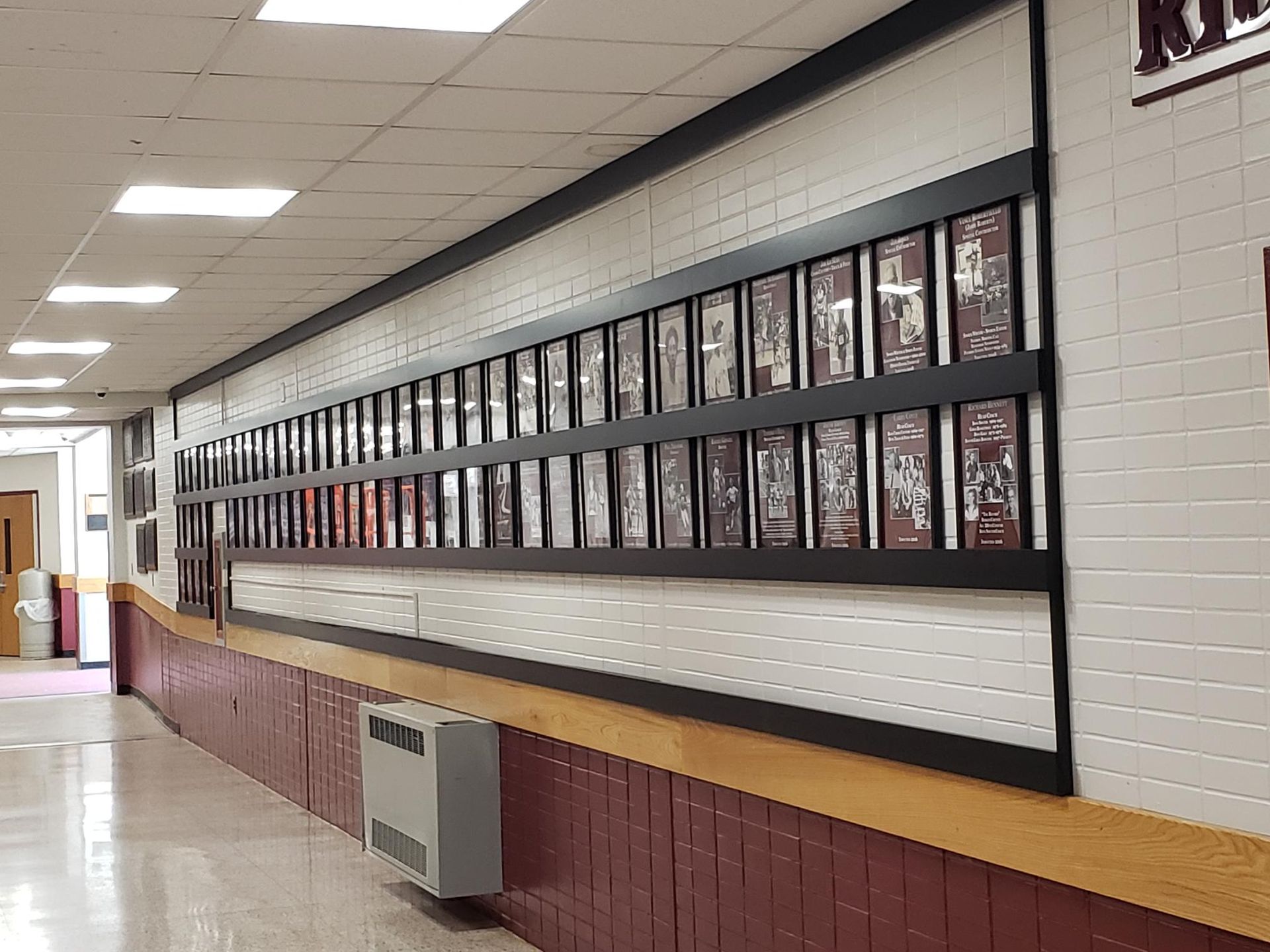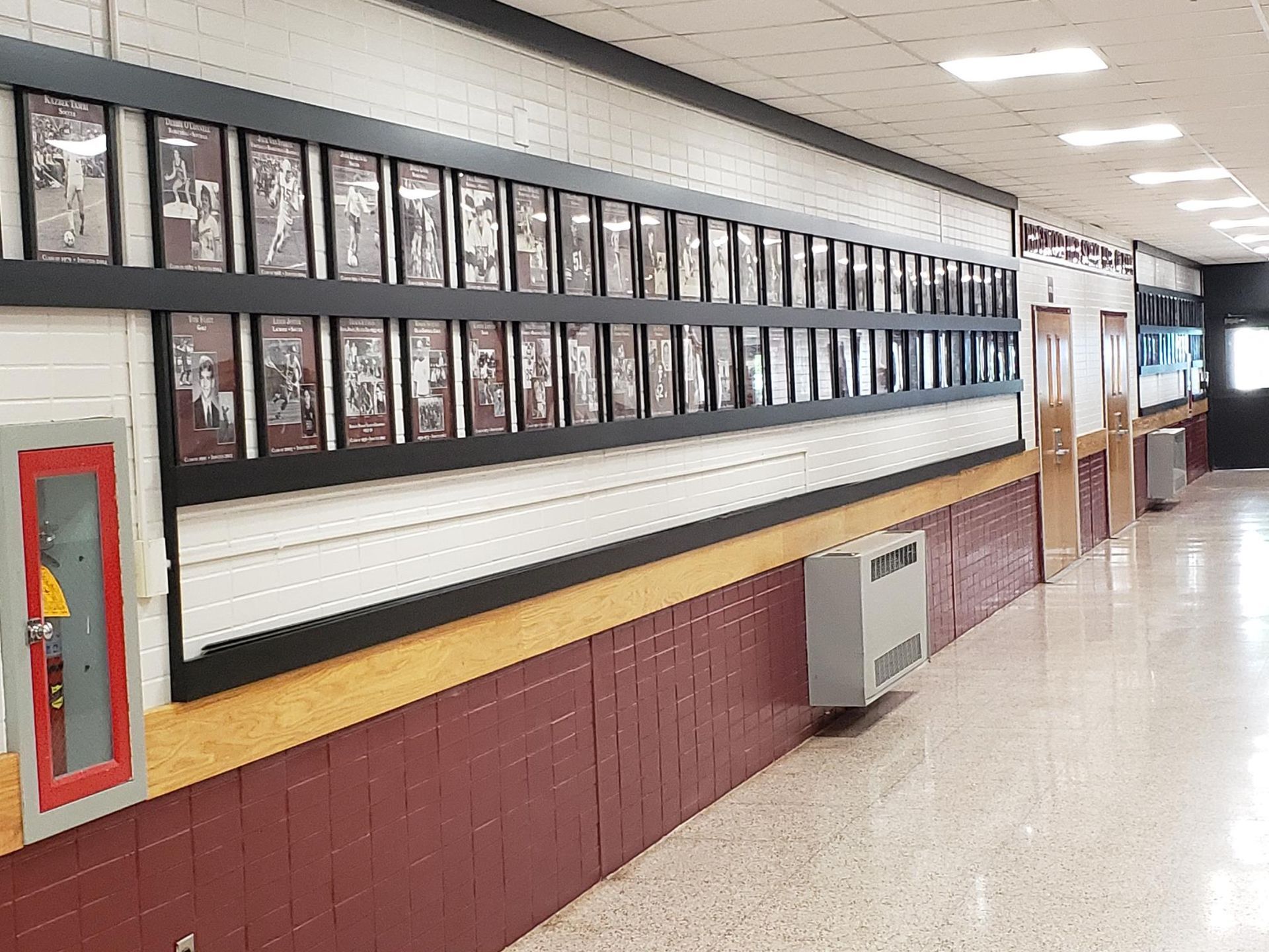 Under the leadership of RHSAHOF Co Chair Tom Thurston, a plan for the renovation of the RHSAHOF portrait gallery and it's surrounding area was devised over a two year period with its implementation taking place this summer. Final approval for the project was obtained through the efforts of Tom Thurston and building principal Jeff Nyhuis.